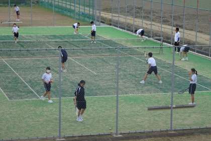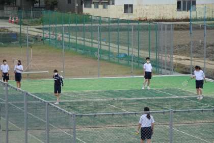 ソフトテニスをしています。3年生のようにラリーが続くところまではいかないようですが、2年目なので相手コートから入ってくるボールに合わせて立ち位置を移動し、ラケットに当てることができるようになりました。ラリーまであと少しですね。