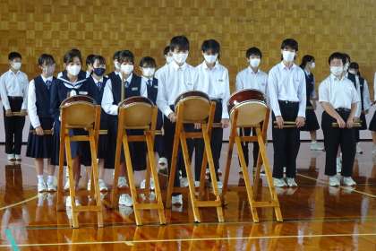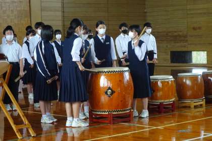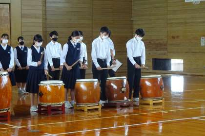2年 三成太鼓 その2 公開日 2021/10/15 更新日 2021/10/15 2年生 10月15日(金) 部分的に練習をすることはありましたが、学年全体での練習は行っていないので、戸惑う場面もありました。