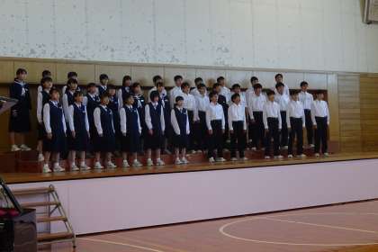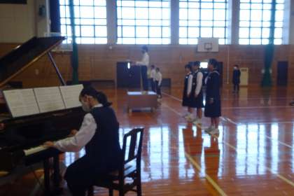 1年 合唱練習 その1 公開日 2021/10/18 更新日 2021/10/18 1年生 10月18日(月) 23日の合唱発表に向けて、1年生がA組とB組の合同練習をしました。実際にステージを出して、動きを確認しました。