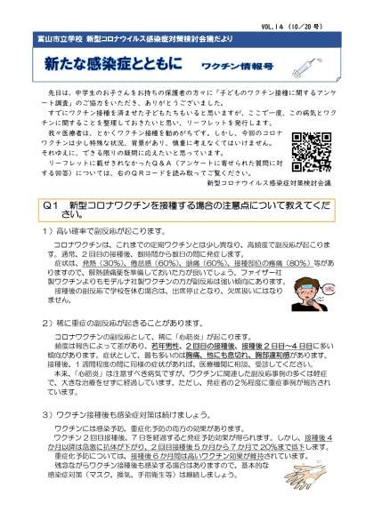 富山市立学校 新型コロナウイルス感染症対策検討会議だより VOL.14