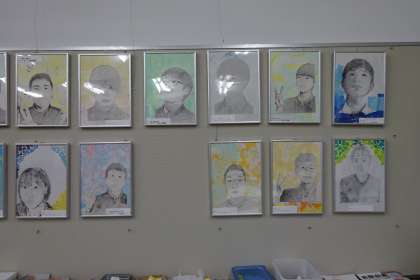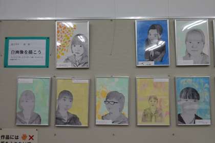 展示作品 その2 公開日 2021/10/22 更新日 2021/10/22 学校行事 10月22日(金) 写真は、3年生が点描画で描いた自画像です。地道な作業でしたが、上手に描けています。見るとすぐに○○さんだと分かります。