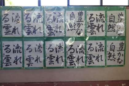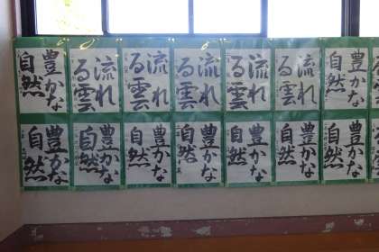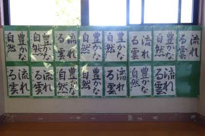 書写の時間にかいた2年生の習字作品です。2年生前の廊下に展示してあります。
