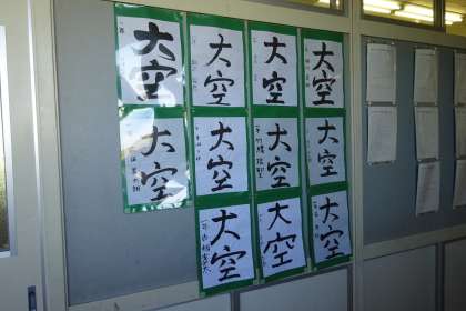 10月22日(金) 1年A組の習字です。光の反射で見えにくいので、ぜひ明日ご覧ください。