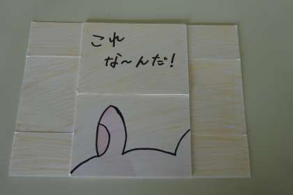 展示作品 その8 公開日 2021/10/22 更新日 2021/10/22 学校行事 10月22日(金) 3年生がつくった「からくり絵本」です。 「これな〜んだ!」と開いていくと、少しずつある動物の姿が見えてきます。これらの作品は、ぜひ、手にとってご覧ください。学習発表会後は、上条保育所に持っていって、幼児にもみてもらいます。残念ながら、コロナ禍のため、生徒との交流は叶いませんでしたが、その様子を担当者が伝えます。 「からくり絵本」は、3階被服室に展示してあります。