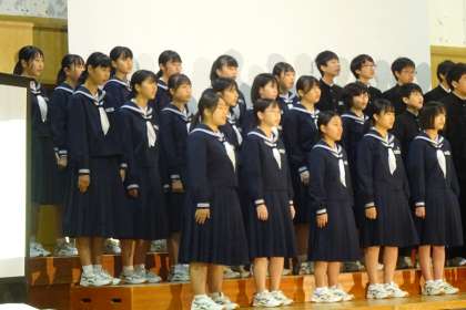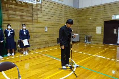 学習発表会 その15 公開日 2021/10/23 更新日 2021/10/23 学校行事 10月23日(土) 3年生の曲は「手紙〜拝啓 十五の君へ」でした。3年生は、直前の休憩時間には、音楽室で練習していました。前日も体育館では伸びのある男性パートと美しい女性パートの声が響いていました。今日の合唱にかける思いは十分伝わっていました。
