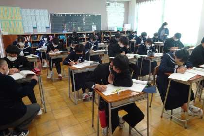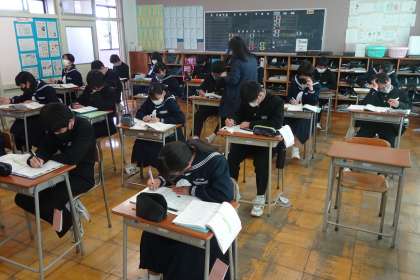 1A 数学 公開日 2021/11/01 更新日 2021/11/01 1年生 11月1日(月) 課題は「ともなって変わる2つの量の関係について考えよう」でした。 空のプールの中に、水を入れ続けたときの時間と水の深さの関係について考えました。画用紙で作ったプールの断面から時間と水の深さの関係を具体的に考えて2つの量の範囲なども考えました。
