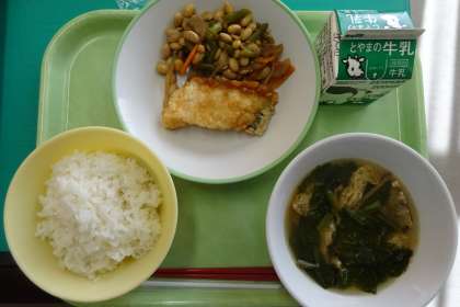 今日の給食 公開日 2021/11/04 更新日 2021/11/04 学校生活 11月4日(木) 揚げ魚のレモン味は、魚はホキを使っているので、身が厚く食べ応えがあり、揚げていますがさっぱりした味でした。 【今日の献立】 ・ごはん ・牛乳 ・揚げ魚のレモン味 ・五目煮豆 ・うすくず汁