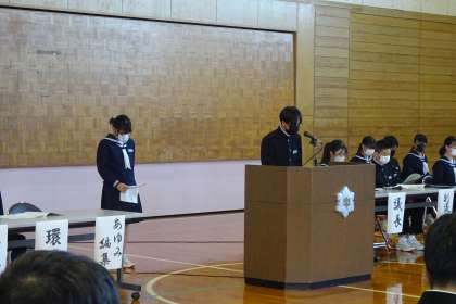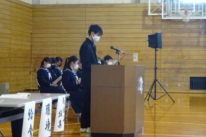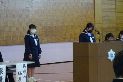 後期生徒総会 その3 公開日 2021/11/05 更新日 2021/11/05 生徒会・専門委員会 11月5日(金) その後、各委員会の委員長・副委員長が活動計画案と学級討議であがった質問や意見に答弁しました。 (写真上:あゆみ編集委員会・選挙管理委員会) (写真中:環境委員会) (写真下:給食委員会)