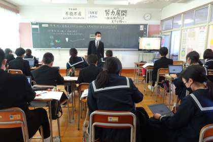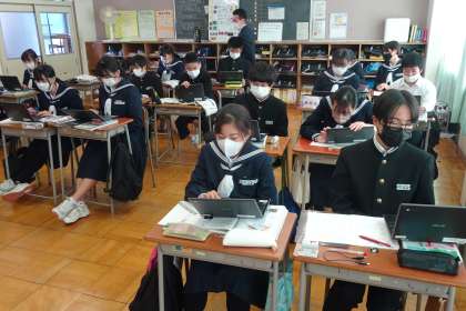 ジャムボードの画面は簡単にコピーをすることができるので、2種類以上考えたペアも、元の画面をコピーして次々と表しました。つなぎ方をノートに書く方法もありますが、ジャムボードのには電池や豆電球が図として存在しているので、短い時間で何通りも書けるので、タブレットの活用はとてもよいと思いました。どの生徒もとても意欲的に取り組んでいました。
