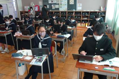 2B 理科 その2 公開日 2021/11/08 更新日 2021/11/08 2年生 11月8日(月) タブレットの画面は、細かい文字や図も必要に応じて画面上に指を当てて広げると、簡単に拡大できるのでとても便利です。