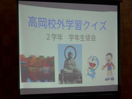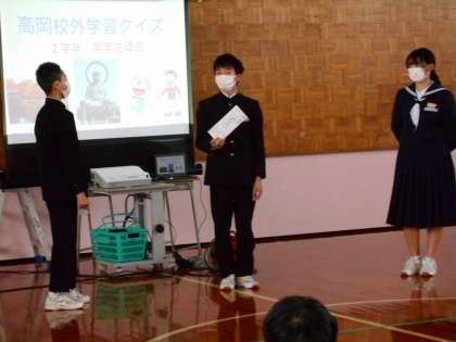2学年では学活の時間を使って、高岡校外学習に向けての学年集会を行いました。