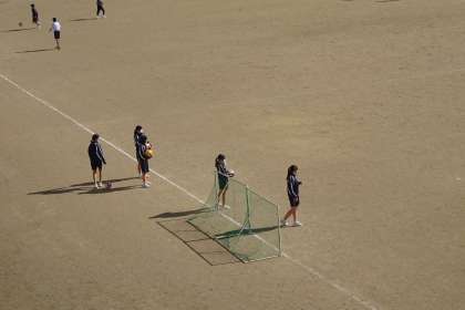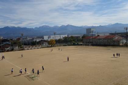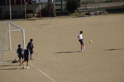 11月8日(月) 青空の下、サッカーの練習をしていました。暖かかったので、半袖、短パンの人もいます。