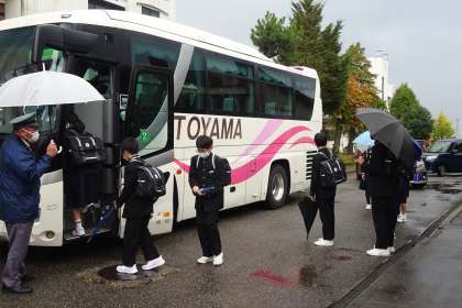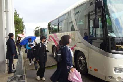 1年 校外学習 その2 公開日 2021/11/11 更新日 2021/11/11 1年生 11月11日(木) 出発式後、玄関であいさつ運動をしていた生徒から「いってらっしゃい」と声を掛けてもらい、学校を出ました。バスに乗車し、8時に学校を出発しました。