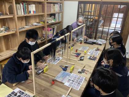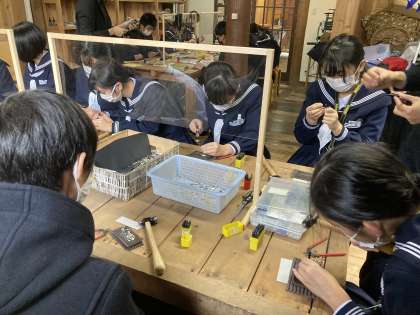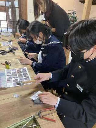 アクセサリーの材料は錫(スズ)です。錫は柔らかくて曲げ加工がしやすい金属のため、金槌やはさみ等を使って手軽に製作活動ができます。