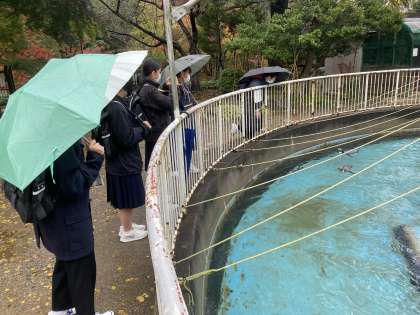 2年 校外学習 その24 公開日 2021/11/12 更新日 2021/11/12 2年生 11月12日(金) 古城公園にある動物園の様子です。 平日の雨の日だったためか、完全に「貸切状態」でした。動物たちに優しく語りかける様子もみられました。