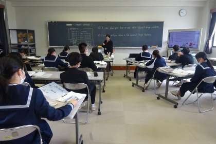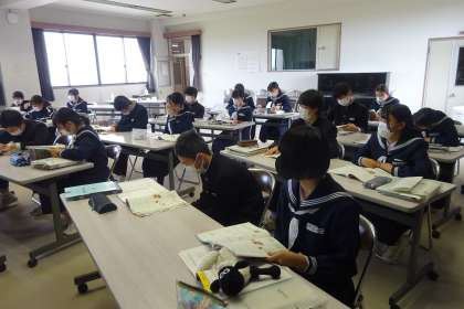 新しい単元に入り、新出単語を先生に続いて元気に音読しました。