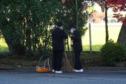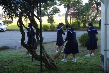 VAS活動 その1 公開日 2021/11/17 更新日 2021/11/17 生徒会・専門委員会 11月17日(水) 秋晴れの爽やかな日になりました。 今日は、環境委員会の「VAS活動」の日でした。1〜3年生の多くの生徒が落ち葉掃きをしてくれました。