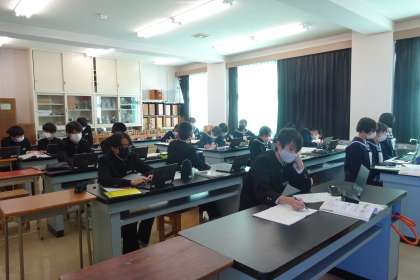 2A 理科 公開日 2021/11/17 更新日 2021/11/17 2年生 11月17日(水) 課題は「直列回路、並列回路それぞれの各点を流れる電流の大きさにはどんな関係があるか。実験結果から考えよう」でした。タブレットに入力した各班のデータを見て考察しました。友達とデータを指さしながら相談している人もいました。