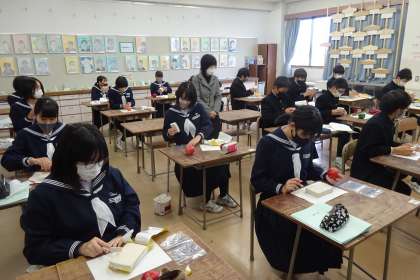 1A 美術 公開日 2021/11/25 更新日 2021/11/25 1年生 11月25日(木) 課題は「自然な形や色を見つけよう」です。家から野菜や果物を持ってきて、粘土を使って形をつくり、色を塗ります。昨年はもっといろいろな種類の野菜があったような記憶がありますが、家からりんごを持ってきた人がとても多かったです。やはり旬だからでしょうか?本物と見分けが付かないような作品を期待してます!!
