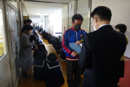 避難訓練 その3 公開日 2021/11/26 更新日 2021/11/26 学校行事 11月26日(金) 最近、日本各地で地震もよく起きますし、火災は毎日のように報道されています。 万一に備えて、落ち着いて行動できるように避難訓練を行うことは大切だと思います。また、体育館へ避難するのは2年以上行っていなかったので、やってみて分かることもありました。振り返りを今後の避難訓練に生かしたいと思います。