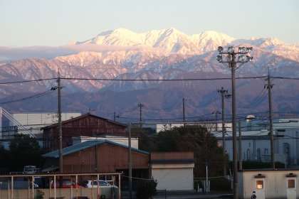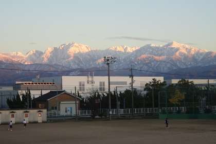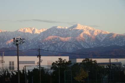 12月2日(木) 夕方になると、立山連峰にかかっていた雲はなくなり、夕焼けに染まってきれいでした。