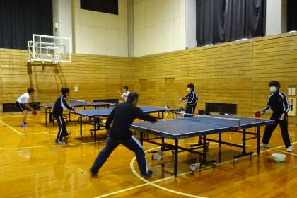 部活動がんばっています!! その1 公開日 2021/12/04 更新日 2021/12/04 部活動 12月4日(土) 今日は雨が降って寒い日になりました。体育館では卓球部が顧問とともに、練習に励んでいました。