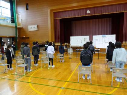 三成中学校の校歌についての感想を質問したところ、「小さい頃にお父さんが中学校の校歌を教えてくれたことがある」と発表してくれた児童がいて、三成中学校卒業生の母校愛を強く感じました。