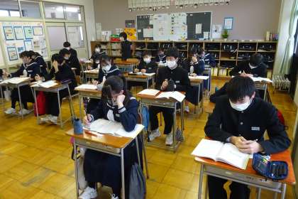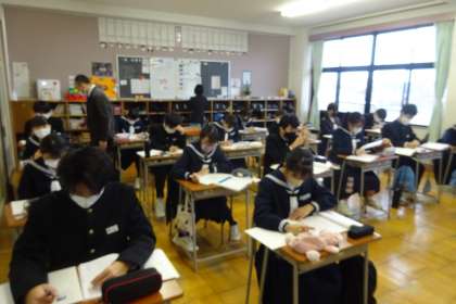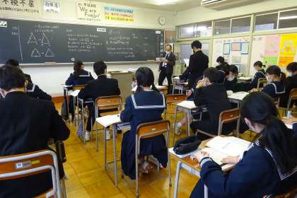 はじめに二等辺三角形の性質を使って正三角形の3つの内角が等しくなることを証明しました。その後、「AならばB」という正しい命題を、「BならばA」と仮定(A)と結論(B)を逆にしても正しいといえるかを、具体的な問題に取り組んで考えました。