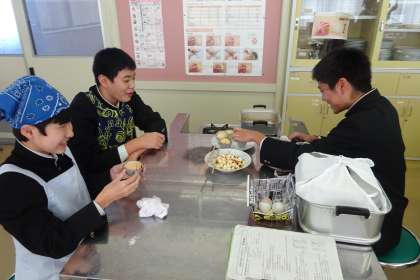 完成しました!!さあ、試食です!蒸しパンがふっくらふくらんで、おいしそうです。幼児用なので、甘さは控えめになっているそうです。