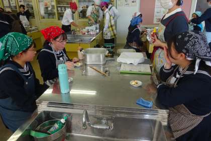 3B 家庭 その5 公開日 2021/12/09 更新日 2021/12/09 3年生 12月9日(木) 実は、今日の給食にも蒸しパンが・・・調理実習でつくったおやつはバナナが練り込まれていますが、給食の蒸しパンはサイコロ状のサツマイモ入りです。