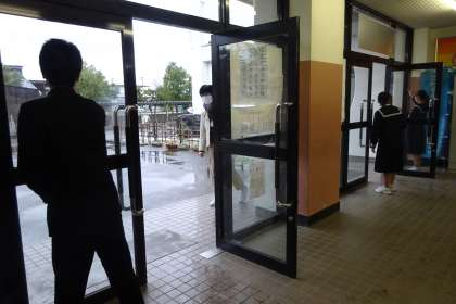 環境委員会 公開日 2021/12/13 更新日 2021/12/13 生徒会・専門委員会 12月13日(月) 環境委員会の常時活動として、朝清掃に取り組んでいます。 晴れの日は、落ち葉掃き等を中心に行っていますが、今日は雨だったので生徒玄関のガラス戸を拭いてくれました。