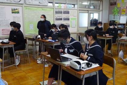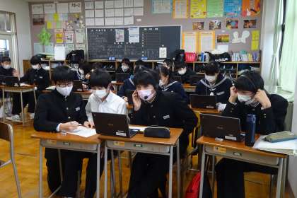 12月15日(水) つながりやすくするため、使用するタブレットの台数を減らして相手のグループと会話をしています。
