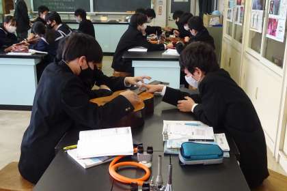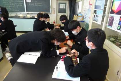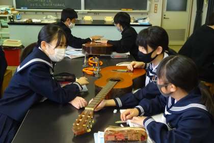 自分のはじいた音を耳を澄まして聞いたり、弦の様子を観察したりしました。課題は解明できたでしょうか?