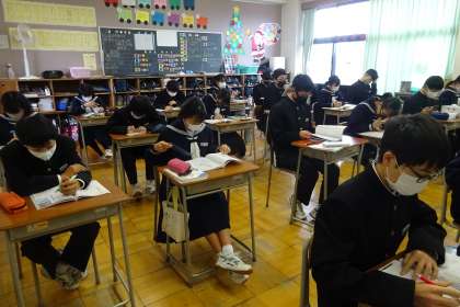 1B 国語 公開日 2021/12/16 更新日 2021/12/16 1年生 12月16日(木) 今日はワークを使った復習と、書き初めについて今後の練習予定や富山市書写展までの予定について確認しました。落ち着いた雰囲気でワークに取り組んでいました。
