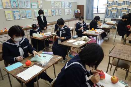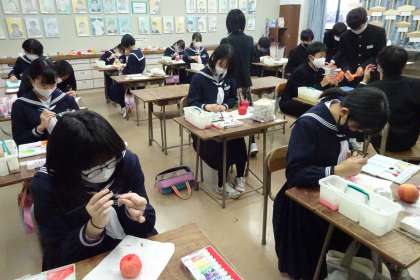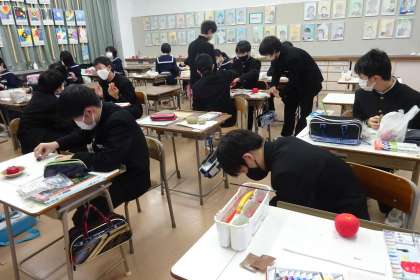 粘土を使った野菜や果物の制作が進んでいます。ほとんどの人が色塗りを始めました。