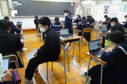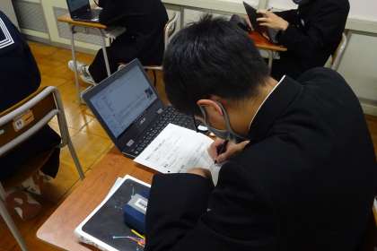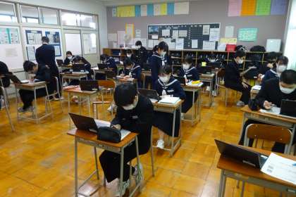 3B 理科 公開日 2021/12/20 更新日 2021/12/21 3年生 12月20日(月) 月や太陽について学習しています。 まずは、学習プリントのQRコードを自分のタブレットで読み込んで学習動画を視聴しました。そして、その学習をもとに自分で問題を作成しています。問題作りは、内容を理解していないとできないので、作ることでより理解が深まることが期待できます。どんな問題ができたでしょうか?黙々と作成している人、友達と相談している人もいました。