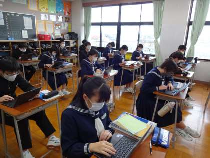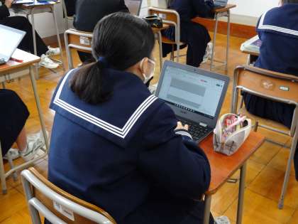 仮定法を習得するために、「もしも〇〇なら・・・」という意味の英文をクロムブックに書き込んでいました。学習課題には「妄想選手権」と書かれていましたが、想像力を働かせてたくさん英文を作ることができたでしょうか。