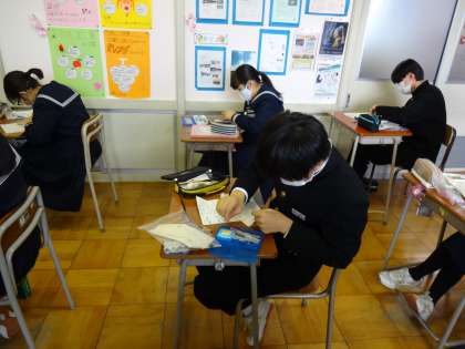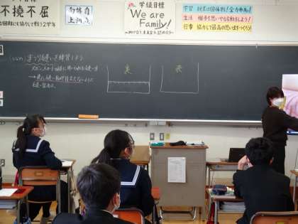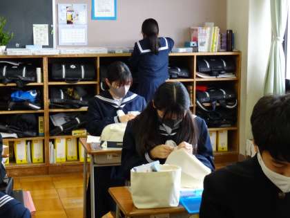 2B 家庭 公開日 2021/12/21 更新日 2021/12/21 2年生 12月21日(火) 「まつり縫いの練習をしよう」という学習課題に取り組みました。先生の説明や動画を参考にして、慣れない手つきながらも頑張っていました。 これで制服等の多少のほころびは、自分で直せるようになるかもしれませんね。