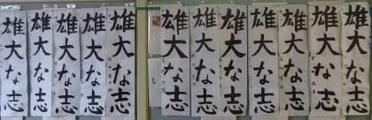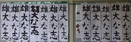 1年A組 公開日 2022/01/11 更新日 2022/01/11 学校行事 1月11日(火) 完成した作品です。生徒の皆さん、練習の成果は発揮できましたか?文字のように雄大な志をもって、何事にも取り組みましょう!!