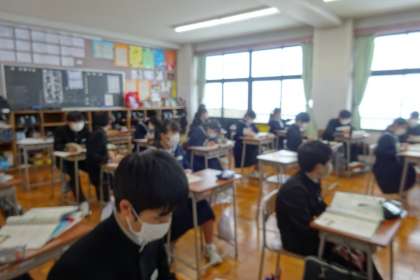 課題は「海斗のスピーチ〜難問長文に挑戦!〜」でした。確かに、モニターに映し出された英文は一文が長く、複雑でした。耳から入ってくる英文は読むスピードも速く、間違いなく難問長文!しかし、宮本さんの自叙伝を思い出し、がんばれ3年生!!