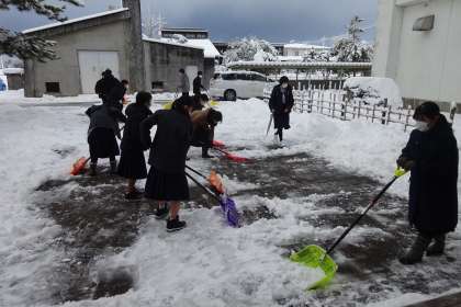 1月14日(金) 時間が経つにつれ除雪する人数も多くなっていき、少しずつ地面が表れていきました。