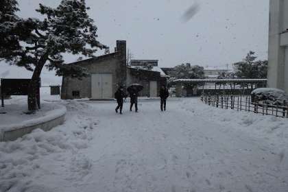 今朝は、運が悪いことに登校中の時間帯が一番吹雪いていました。風が強く、横から雪が吹き付けており、傘をさいていてもサブバックに雪が積もるほどでした。これから、降雪や凍結等がさらに起こりやすくなります。時間にゆとりをもって登校し、周囲をよく見て安全に気を付けましょう。