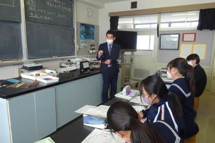 2B 理科 公開日 2022/01/20 更新日 2022/01/20 2年生 1月20日(木) 課題は「磁石(コイル)の動かし方と電流の流れ方にはどんな関係があるか実験結果から考えよう」でした。 先生が少し大きな電流計とコイルで実験を振り返りながら、学習のまとめました。