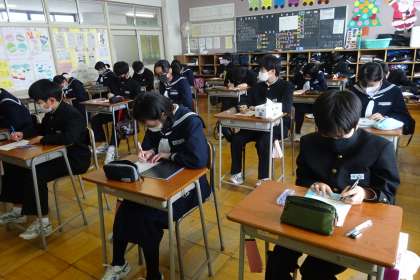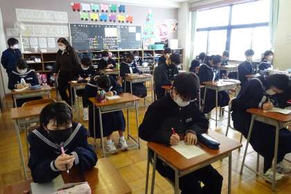 1B 数学 公開日 2022/01/20 更新日 2022/01/20 1年生 1月20日(木) 課題は「半径がちがう2つの円を利用して、角の二等分線の作図をしよう」でした。角の二等分線の作図から分かる角の二等分線の性質についても考えました。