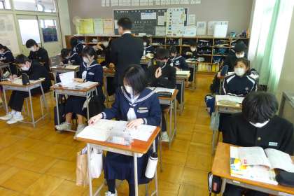1月21日(金) 文法の付属語について学習しました。学習後、ワークの練習問題に取り組みました。