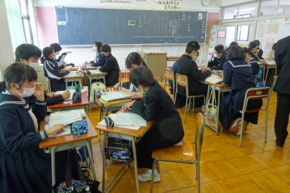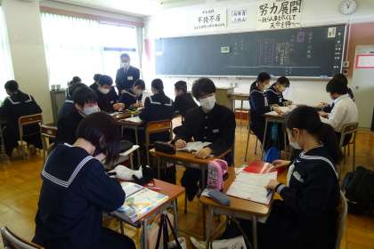 2A 国語 その2 公開日 2022/01/21 更新日 2022/01/21 2年生 1月21日(金) 練習問題の答え合わせは、答えを見ないでという指示で、お互いに意見を伝えあうことをねらいに、少人数のグループになって行いました。