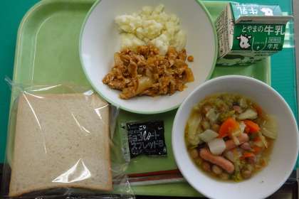 ハリー・ポッターは11歳の誕生日を迎えたとき「ホグワーツ魔法魔術学校」へ入学します。そして、友情と勇気の冒険、ハリーの家族にまつわるミステリーが始まります。「ポークチョップ」と「ゆでポテト」は、ハリーが魔法学校に入学して初めて大広間で食事をするシーンに登場します。また、いろいろな味の百味ビーンズは、魔法界で大人気のお菓子です。給食では、百味ビーンズに見立てたミックスビーンズを、ポトフの中に入れました。