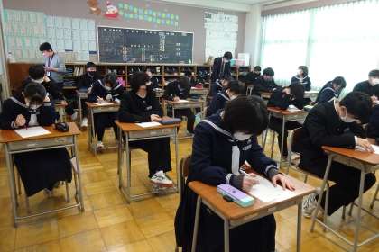 授業の中で「コロナ禍でのストレス」「中学生の悩みベスト5」「ストレスとは?ストレス対処法」「ありのままの自分を受け入れるには」などについて教えていただきました。また、「リフレーミングのワーク」を体験しました。このワークは、「欠点辞典のワークシート」におとなしい、いいかげんな、意見が言えないなどのたくさんの言葉がかかれてあり、自分に当てはまるものを囲み、その言葉をプラスに言い換えた「リフレーミング辞典」をつかって言い換えてみます。そのことから、自己や他者を一面的に見ず、個性として尊重できたら心の健康につながるのではないかという授業でした。