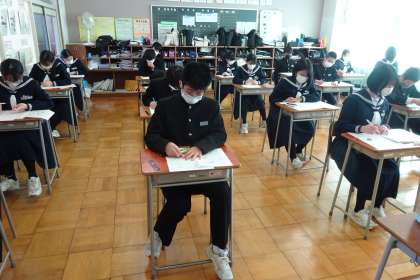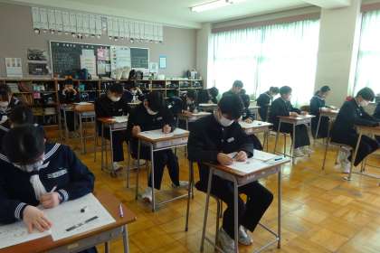 2年生は12月から家庭学習習慣の定着と入試に向けて、テキスト学習を始めました。学習ノートは担任が毎日確認をしていますが、忘れる生徒はほとんどなく、多くの生徒が時間をかけて取り組んでいると聞きました。その成果が少しでも出るとよいです。今は出なくても、「継続は力なり」といいます。今後も現在の取組を継続しましょう。