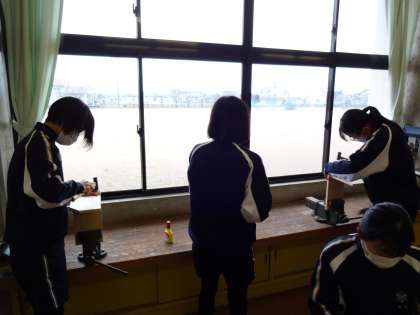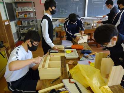 1B 技術 公開日 2022/02/04 更新日 2022/02/04 1年生 2月4日(金) 1年生は、技術の授業で本立てを製作しています。釘を打ち込む元気のよい音が、技術室に響いていました。 完成が楽しみですね。